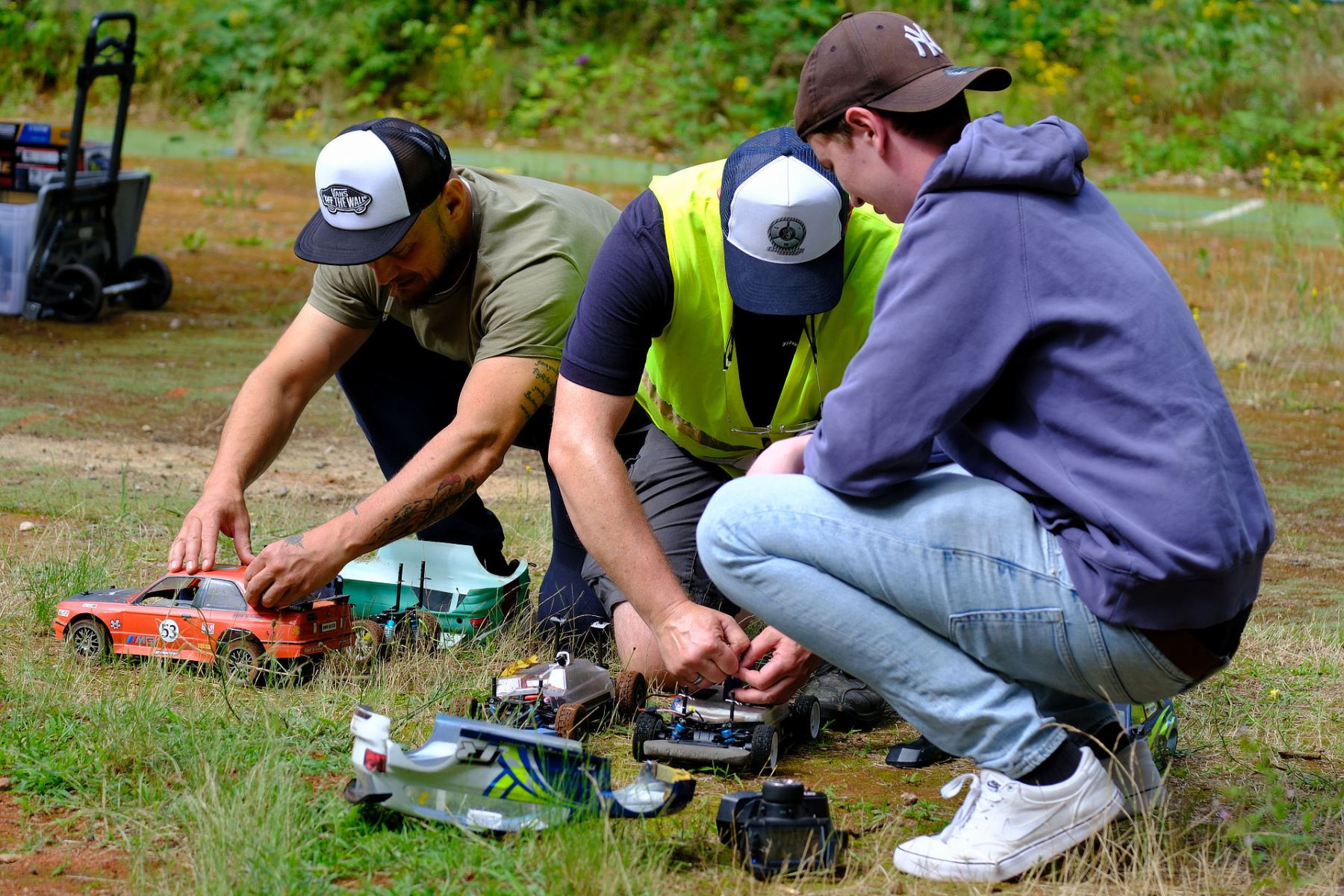 Nach kurzer Fahrerbesprechung starteten 12 Fahrer in 4 Teams um 10:15 Uhr in das erste 4h RallyX Rennen im MSP. Das Wetter war ausnahmsweise trocken, entgegen der Vorhersage. Einfluss hatte letztlich neben der Strategie eines möglichst seltenen Fahrerwechsels insbesondere dessen schnelle Umsetzung. Hier waren insbesondere bei ungeplanten technischen Ausfällen Unterschiede zu erkennen, wenn z.B. der nächste Fahrer noch nicht frühzeitig bereitstand oder gerade um die Ecke. Technische Ausfälle waren vor allem bei den einfachen Chassis zu beobachten, was natürlich ebenso großen Einfluss auf das Ergebnis hatte.