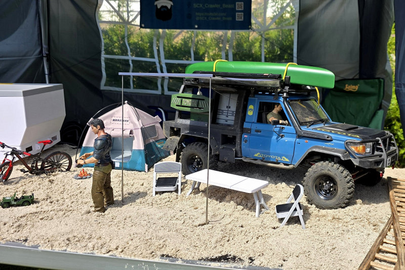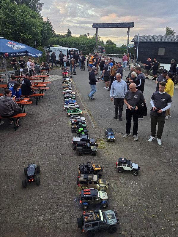 Dann kam die große Verlosung mit echt schönen Preisen, u.a. ein Axial Builder`s Kit, ein Boom Racing Zil und ein 1:18 Crawler (den hat ein kleiner Junge gewonnen, das war richtig passend!), dazu viele kleinere, teilweise sehr nützliche Preise. Da haben sich die anwesenden Hersteller nicht lumpen lassen. Nach der Verlosung den nächsten Fußmarsch zurück zum Campingplatz, schön mit den Nachbarn geschnackt und etwas getrunken. Ich bin dann ins Hotel und habe lecker Peking-Ente gegessen, dann zurück zum Platz für die Nachtfahrt. Sehr schönes Line-Up an unterschiedlichsten Crawlern, da konnte man die ein oder andere Idee mitnehmen. Dazu immer wieder nette Gespräche mit den anwesenden Gästen. Nach einem weiteren Fußmarsch mit den ganzen Crawlern inkl. Lichtern ging es dann auf die verschiedenen Teile der Strecke. Auch dort wieder nette Gespräche geführt und die Werbetrommel gerührt. Dazu hatte ich ein sehr nettes Gespräch mit german_rc_girl und ihrem Freund/Mann. Gleich ein Like und Follow dagelassen, lohnt bei den gut gemachten Beiträgen. Nach ausgiebiger Fahrt sind wir dann zurück zum Campingplatz und haben dort noch einen schönen Plausch gehalten. Bin dann zu fortgeschrittener Stunde zurück ins Hotel.