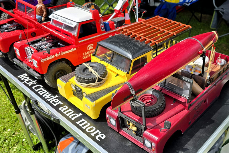 Samstagmorgen erstmal ein schönes Frühstück im Hotel genossen, dann wieder zum Campingplatz und nochmal nach Gerolstein ein paar fehlende Sachen kaufen. Gegen Mittag zusammen mit Helmut und Rocco zur Strecke und das (ziemlich große) Angebot der Händler begutachtet. Traxxas und Monster Hop-Ups waren da, dazu die Leute der Sherpa-Tour und einige Anbieter von (sehr gut gemachten) 3D-Druck-Teilen. Helmut hat dann auch gleich ein paar schöne Scale-Teile für die Werkstatt unter dem Parkdeck erstanden. Nicht wirklich billig, aber top gemacht. Die Ölwechselwanne hat einen funktionierenden Ausguss!