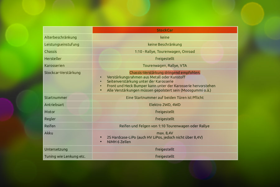 Habt ihr Interesse an Stock-Car Rennen? oder wollt ihr euer RallyX Auto mal auf einem StockCar Oval ausfahren? dann schaut euch doch das Reglement unserer StockCar Challenge an.